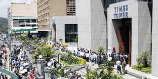 Taxpayers queue outside Kenya Revenue Authority’s offices in Nairobi to file tax returns. KRA is set to issue new guidelines on VAT refunds. Photo/File