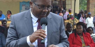 Tharaka-Nithi Governor Samuel Ragwa addresses the public at Makengi Dispensary on June 23, 2016. PHOTO | ALEX NJERU | NATION MEDIA GROUP