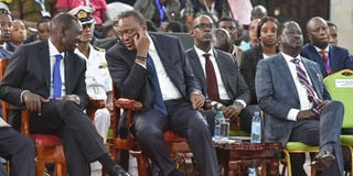 President Uhuru Kenyatta, his deputy William Ruto and Former Prime Minister Raila Odinga during the National Anti-Corruption Conference at Bomas of Kenya, Nairobi. PHOTO | JEFF ANGOTE | NMG