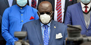 Education Cabinet Secretary Prof George Magoha briefs media after attending a consultative meeting with stakeholders on the reopening of tertiary institutions at the Kenya Institute of Curriculum Development (KICD) on July 30, 2020. PHOTO | FRANCIS NDERITU | NMG