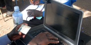An IEBC clerk keys in a voter’s ID details during the Biometric Voter Registration exercise at the St Teresa’s Girls Secondary School in Nairobi in 2012. PHOTO | FILE