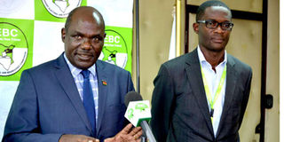 Independent Electoral and Boundaries Commission (IEBC) Chairman Wafula Chebukati (left) and CEO Ezra Chiloba. photo | Salaton Njau | NMG