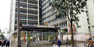 Passers-by at the National Treasury’s head office in Nairobi. PHOTO | FILE