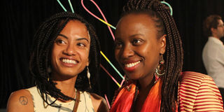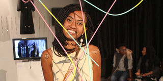 Yaye with her steel wire sculpture at Goethe. PHOTO | MARGARETTA WA GACHERU | NMG
