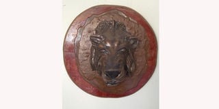 With that history in mind and my fierce opposition to the hunting or poaching of Kenyan wildlife, my favourite Bwire’s piece are his lion ‘trophies’. That’s becase they are made not from real animals but with carefully crafted plaster and bronze paint.