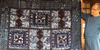 Nairobi Gallery's Alan Donovan holding Nike 77's batik quilt. PHOTO | MARGARETTA WA GACHERU | NMG