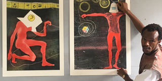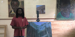 Paul Njihia with his portraits at Kobo. PHOTO | MARGARETTA WA GACHERU | NMG