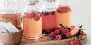 The second stage takes two days. He adds fresh ginger, fresh strawberries, blueberries or raspberries to the fermented tea in a sealed container so the flavours can infuse.
