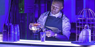 Mixologist at the launch of the Martell Blue Swift in Nairobi. PHOTO | COURTESY