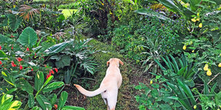 Polly Taylor's dog in her home garden that sits on a three and half-acre piece of land. PHOTO | COURTESY