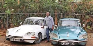 Paul onditi with his white Citroën DS21 and a green Citroën DS Super. PHOTO | MARGARETTA WA GACHERU | NMG