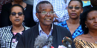 Chief Justice David Maraga flanked by members of The National Council for the Administration of Justice address journalists at the Supreme Court, Nairobi, on March 15, 2020 to give a statement on Corona Virus. PHOTO | SILA KIPLAGAT