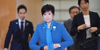 Tokyo Governor Yuriko Koike (centre) arrives for a meeting with Japan’s Prime Minister Shinzo Abe at the prime minister’s office in Tokyo on Thursday. PHOTO | AFP.