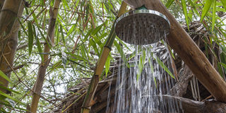 The bathroom is made from bamboo trees, believed to be 50 years old. There is also a growing bathroom with live flowers and shower cables running through a tree trunk.