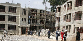 Workers build apartments in Kileleshwa, Nairobi. A freeze on transactions involving leasehold land is likely to slow down the property market. File