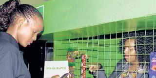 A customer pays for goods at a kiosk in Nairobi via M-Pesa. Kenya is on its way to becoming a cash-lite economy. PHOTO | FILE