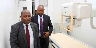 Medical Services director Francis Kimani (in front) and Nairobi Women’s Hospital CEO Sam Thenya during the official opening of the hospital’s fourth branch in Kitengela, near Nairobi. Photo/William Oeri