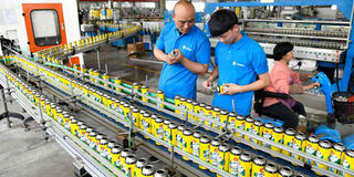 Workers checking aerosol for export at a factory in China. Trade tensions between Beijing and the US may result in global financial markets instability. FILE PHOTO | NMG