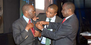 Former Chief Justice Willy Mutunga, Kenya Revenue Authority boss John Njiraini and Treasury Secretary Henry Rotich the launch of Tax Payers Month in Nairobi on October 1, 2018. PHOTO | SALATON NJAU | NMG