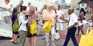 Inchcape Shipping Services Operationas Manager Bwanaheri Lali (right) welcomes tourists who were on board Ms Silver Spirit Cruise Ship which docked at the Port of Mombasa January 29, 2018. FILE PHOTO | NMG