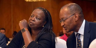 World Bank Country Director for Kenya Diarietou Gaye (left) and Central Bank of Kenya Governor Patrick Njoroge during the release of the Kenya Economic Update in Nairobi on April 12, 2017. PHOTO | DIANA NGILA | NMG
