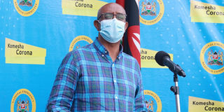 Health Chief Administrative Secretary (CAS) Rashid Aman giving coronavirus update on May 9, 2020 at Afya House in Nairobi. PHOTO | DENNIS ONSONGO | NATION MEDIA GROUP