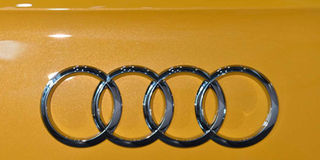 This file photo taken on March 15, 2017 shows the logo of the German car producer Audi. Audi announced on June 1, 2017 it was re-calling 24,000 vehicles. AFP PHOTO | STACHE