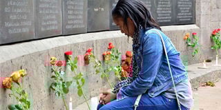 Faith Mutinda, who lost her father Daniel Mutinda in the August 7 1998 US embassy bomb explosion, at the Bomb Blast Memorial Park in Nairobi on Aug 7, 2019. PHOTO | FRANCIS NDERITU
