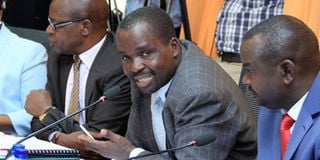National Assembly’s Public Accounts Committee chairman Nicholas Gumbo (centre) speaks at a Press briefing on the NYS scandal last November. FILE PHOTO | NMG