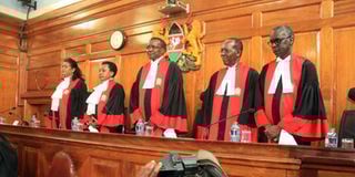 From left: Supreme Court judges Njoki Ndung’u, Philomena Mwilu (Deputy Chief Justice), David Maraga (Chief Justice), Jackton Ojwang and Isaac Lenaola in Nairobi on September 20, 2017. PHOTO | JEFF ANGOTE