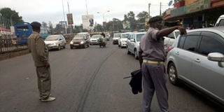 Nairobi City County traffic marshals direct personal cars on Thika Road overpass near Koja bus stop on December 3, 2018. PHOTO | SILA KIPLAGAT | NATION MEDIA GROUP