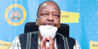 Health Cabinet Secretary Mutahi Kagwe addressing Nation Media Group's reporters at Afya House in Nairobi, after CEO Stephen Gitagama paid him a courtesy call on May 1, 2020. PHOTO | DENNIS ONSONGO | NATION MEDIA GROUP