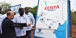 Shelter Solutions director strategy Delano Kiilu (right) and Weng Fu Limited project manager Yang Zuoge (left) at the launch of a Sh9 trillion SIDEP on January 6, 2018. PHOTO | WACHIRA MWANGI | NMG