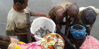 Fish farmers harvest tilapia from their ponds in Kibokoni, Kilifi County. The national government is planning to construct fish markets in Mombasa and Kilifi counties. FILE PHOTO | COURTESY