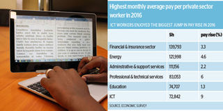 The Economic Survey 2017 report, which was released last week, shows that private sector workers in the information and communication segment saw their annual pay rise to an average of Sh874,105 in 2016, up from Sh802,169 the previous year – representing a nine per cent growth.