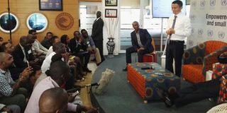 The Chinese tycoon spoke to a room full of entrepreneurs, most of them running technology-based firms. PHOTO | DANN MWANGI | NMG