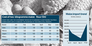 The deficit pushed the price to an all time high of Sh400 per two kilogramme packet before a slight decline to Sh380 after the government raised imports to bridge the deficit.