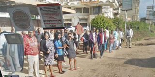 Commuters stranded at a bus stage on Ngong Road as public service vehicles kept off the roads on November 5, 2018. Police have started enforcing the dreaded 'Michuki rules' that require vehicles to have speed governors and safety belts, among other things. PHOTO | COLLINS OMULO | NATION MEDIA GROUP