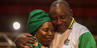 Cyril Ramaphosa (right) is congratulated by Nkosazana Dlamini-Zuma at the 54th ANC conference in Johannesburg on December 18, 2017 after his election. PHOTO | AFP