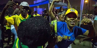 Supporters of newly elected African National Congress (ANC) President Cyril Ramaphosa celebrate outside The NASREC Expo Centre in Johannesburg on December 18, 2017. PHOTO | AFP