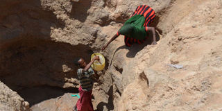 Women draw water from a well during a drought in Garissa County in the past. FILE PHOTO | NMG