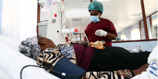 A doctor attends to a patient at the Nakuru Level 5 Hospital on March 15, 2017: Only Elgeyo Marakwet, Nandi, Makueni and Tana River counties have paid their medics in full. FILE PHOTO | SULEIMAN MBATIAH | NMG