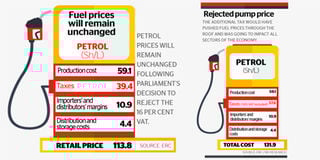 The VAT on fuel would have increased to 44 per cent the proportion that the government takes in the cost of one litre of fuel.