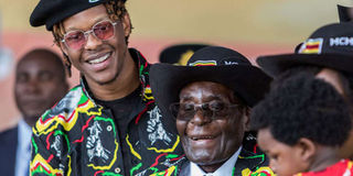 Zimbabwean President Robert Mugabe (centre), with his son Robert Jr and grandson during his 93rd birthday celebrations on February 25, 2017. AFP PHOTO | JEKESAI NJIKIZANA | NMG