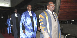 Senate Speaker Ekwee Ethuro also wore the gown but without a wig. Supreme Court judges have discarded wigs and traditional court garbs.