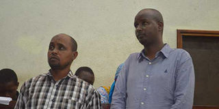 Hassan Barhe Nur (left) and Umar Idle Yakub, directors of Kalme General Contractors and Suppliers Ltd when they appeared in court in Mombasa on October 15, 2018 charged with Sh160 million tax evasion. They were released on bond. PHOTO | BRIAN OCHARO | NATION MEDIA GROUP