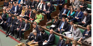 A handout photograph taken and released by the UK Parliament on July 17, 2019 shows Britain's Prime Minister Theresa May (centre) during the weekly question and answer session in the House of Commons in London. PHOTO | AFP