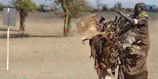 A TURKANA WOMAN CARRIES HIDES SKINNED FROM GOATS HE HAS LOST TO A BITING DROUGHT THAT HAS RAVAGED LIVESTOCK POPULATION IN NORTHERN KENYA. FILE PHOTO | NMG