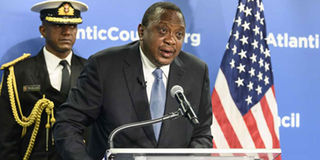 President Uhuru Kenyatta gives a speech at the Atlantic Council in Washington, DC on February 5, 2020. PHOTO | ERIC BARADAT | AFP