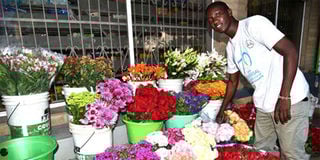 Patrick Hare, a florist along Links Road in Nyali, Mombasa, last week. The flower vendors will be affected by anticipated shortage of the produce ahead of Valentine’s Day. PHOTO | KEVIN ODIT | NMG